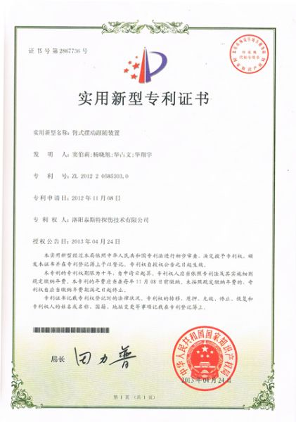 重视知识产权,不断进行创新,凭着以技术行业的理念,TST公司又获得了由知识产权局颁发的四项发明利证书,分别是两项实用新型:臂式摆动跟随装置、种便携式榴莲视频在线观看视频损伤探测装置。两项外观利:榴莲视频黄色网(防爆可携带型)、榴莲视频黄色网(携带式大直径型)。