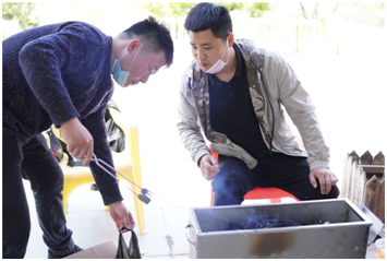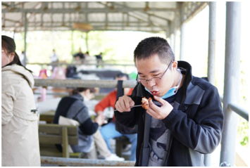 大家展示了不同的烧烤方法和技艺,欢声笑语随着缕缕炊烟萦绕在空中,大家吃着自己亲手烤出的各种食品,聊着自己在工作和生活中遇到的各种趣事,其乐融融,食物被大家“洗劫一空”!